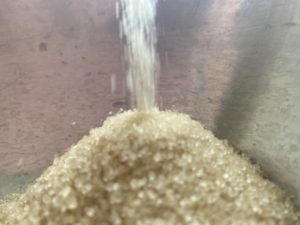 - Mélangez les sucres, le beurre demi-sel, le sel et la vanille liquide jusqu’à obtenir une sorte de crème.