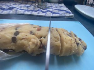 - Enroulez la pâte en un boudin de 6cm de diamètre dans un film plastique.