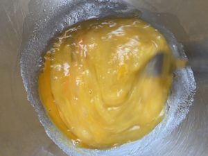 - Battez les oeufs, le sucre et ajoutez une pincée de sel.