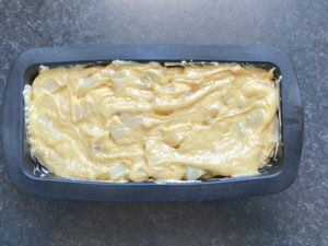 - Verser la pâte dans le moule. Et laisser cuire à 180° pendant 1h.